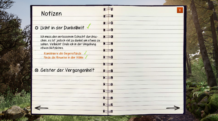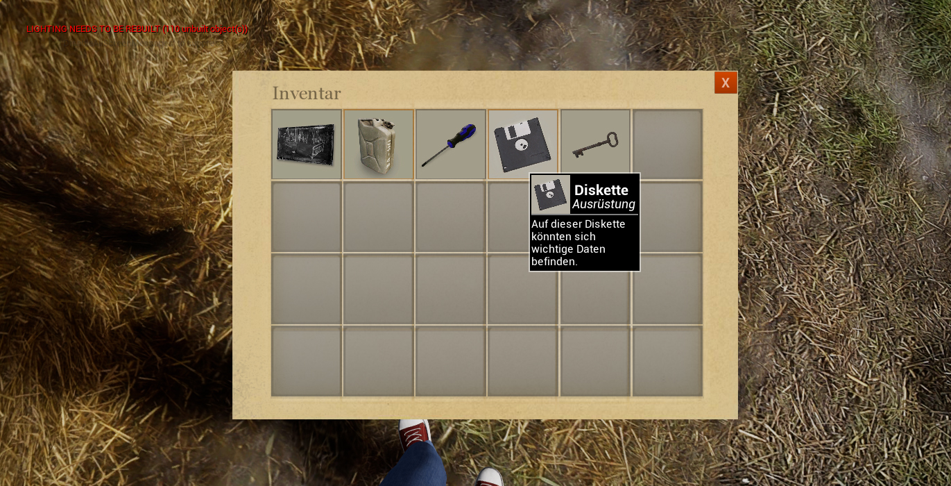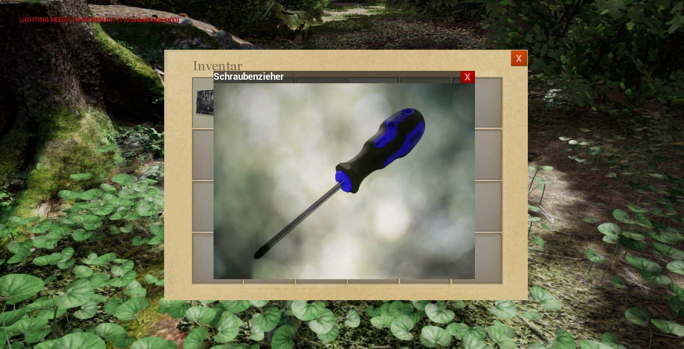 Besides the typical gameplay mechanics of a point and click adventure, "Vanished!" features true first person to be as immersive as possible. The graphics aim to match realism. Therefore, many photogrammetry assets have been created during the project. Most of the objects in the game come with 4 LOD levels and all materials are instanciated based on master materials